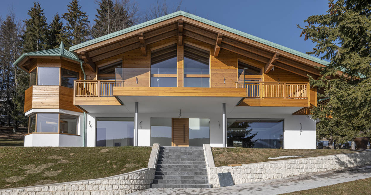 In Folgaria a luxury villa overlooks the surrounding landscape between wood and light