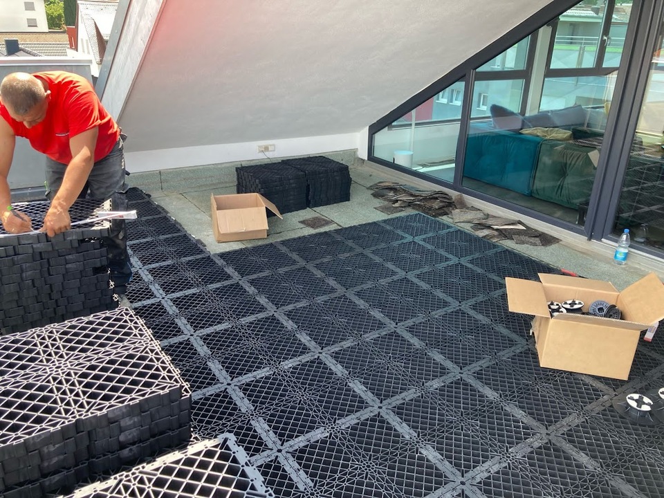 Versatilità e personalizzazione: Lastre ceramiche di diverse dimensioni, lastre cementizie, erba sintetica: qualsiasi finitura può essere posata su GRF System, per creare un design unico e personalizzato. Il GRF system ti permette di dare libero sfogo alla tua creatività, realizzando pavimentazioni che si adattano perfettamente allo stile e alle esigenze ricercate. Un mix che varia dagli spazi verdi alle ceramiche.