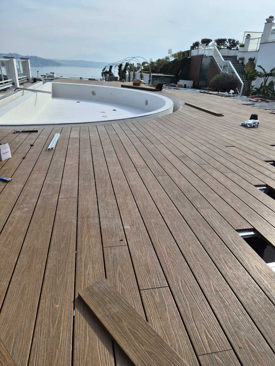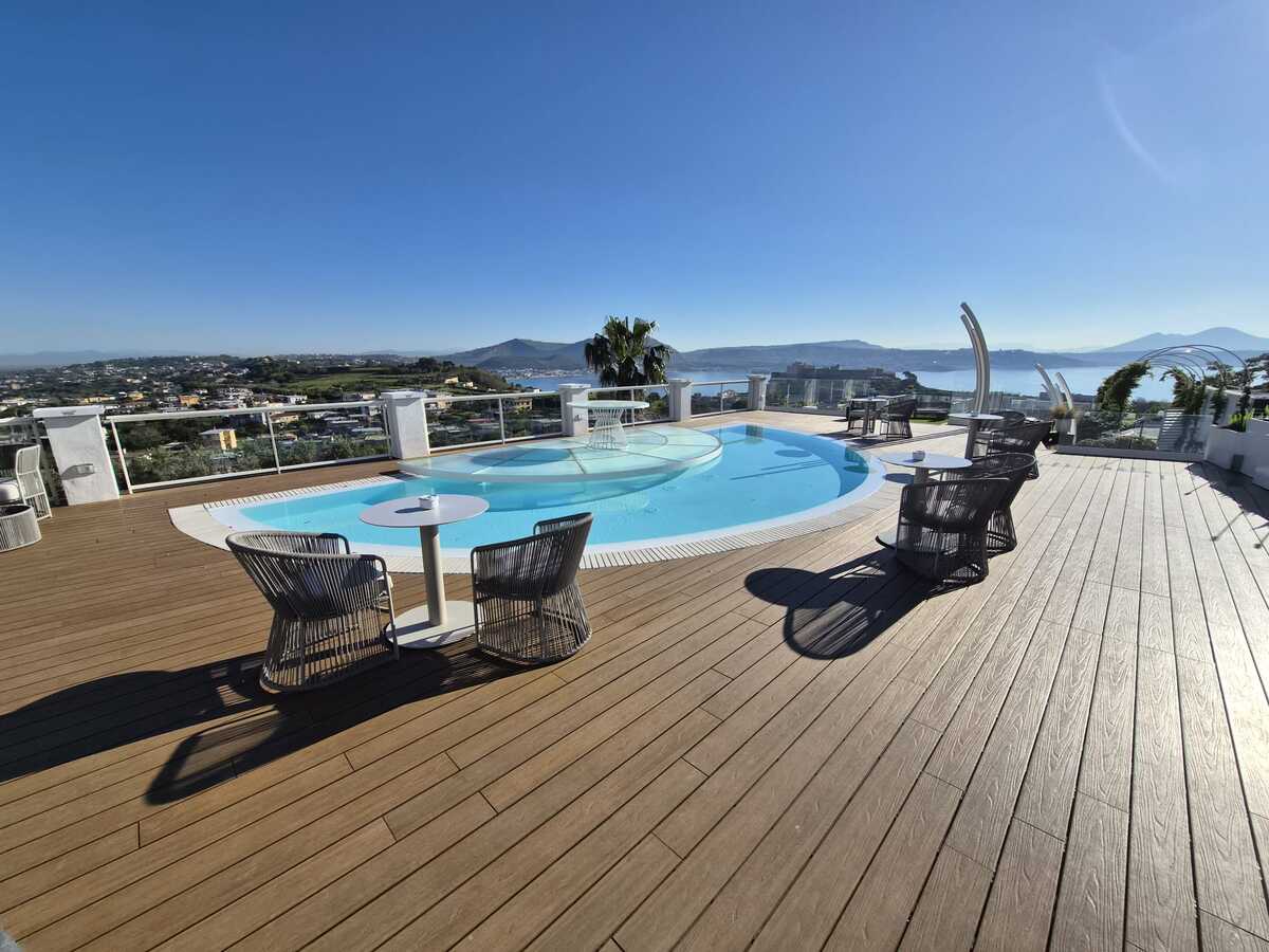 Tecnologia Woodeck e visione progettuale per un bordo piscina sospeso sul Golfo di PozzuoliEterno Ivica