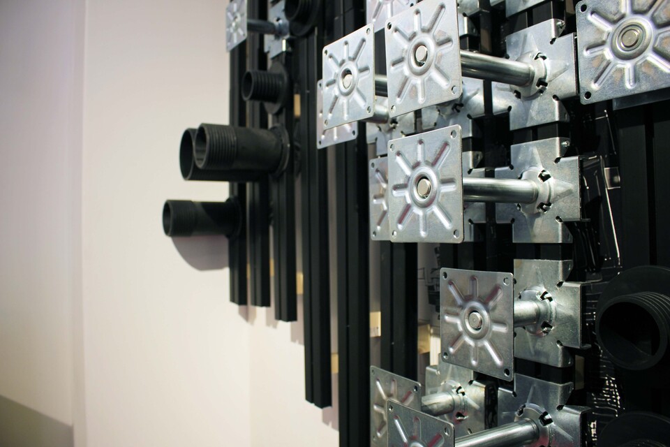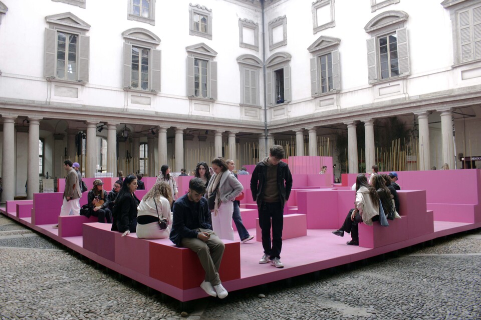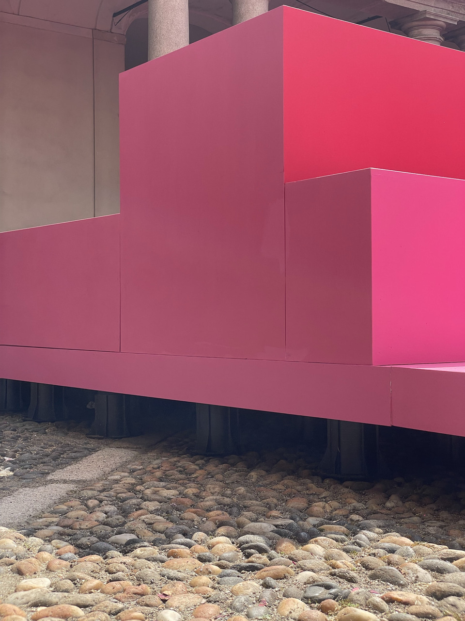 Finally, we partnered with MoscaPartners for the site-specific installation Metamorphosis in Motion at Palazzo Litta, designed by architect Lina Ghotmeh. A 17-meter-per-side pink maze composed of 18 modules follows the geometry of the historic courtyard, contrasting with its Baroque architecture. The pathways guide visitors through spaces for interaction, reflection, and immersion, enriched by sound and olfactory experiences. At its core, our raised floor substructure—based on NMB5 supports with joist heads—forms the invisible yet essential infrastructure enabling the entire installation.
